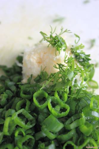 Добавить порезанную зелень, перемешать
